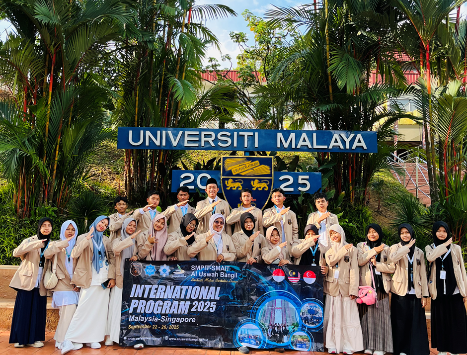 Rangkaian International Program SMPIT–SMAIT Al Uswah Bangil di Singapura dan Malaysia pada 22–26 September 2025 tidak hanya menjadi perjalanan akademik, tetapi juga jejak sejarah bagi para siswa untuk menatap masa depan dengan visi global. Melalui kunjungan akademik, penyerahan buku karya antar bangsa, hingga penampilan Drama Palestina yang sarat nilai kemanusiaan, para siswa belajar bahwa ilmu, kepedulian, dan karya adalah bekal utama untuk menjadi generasi unggul.