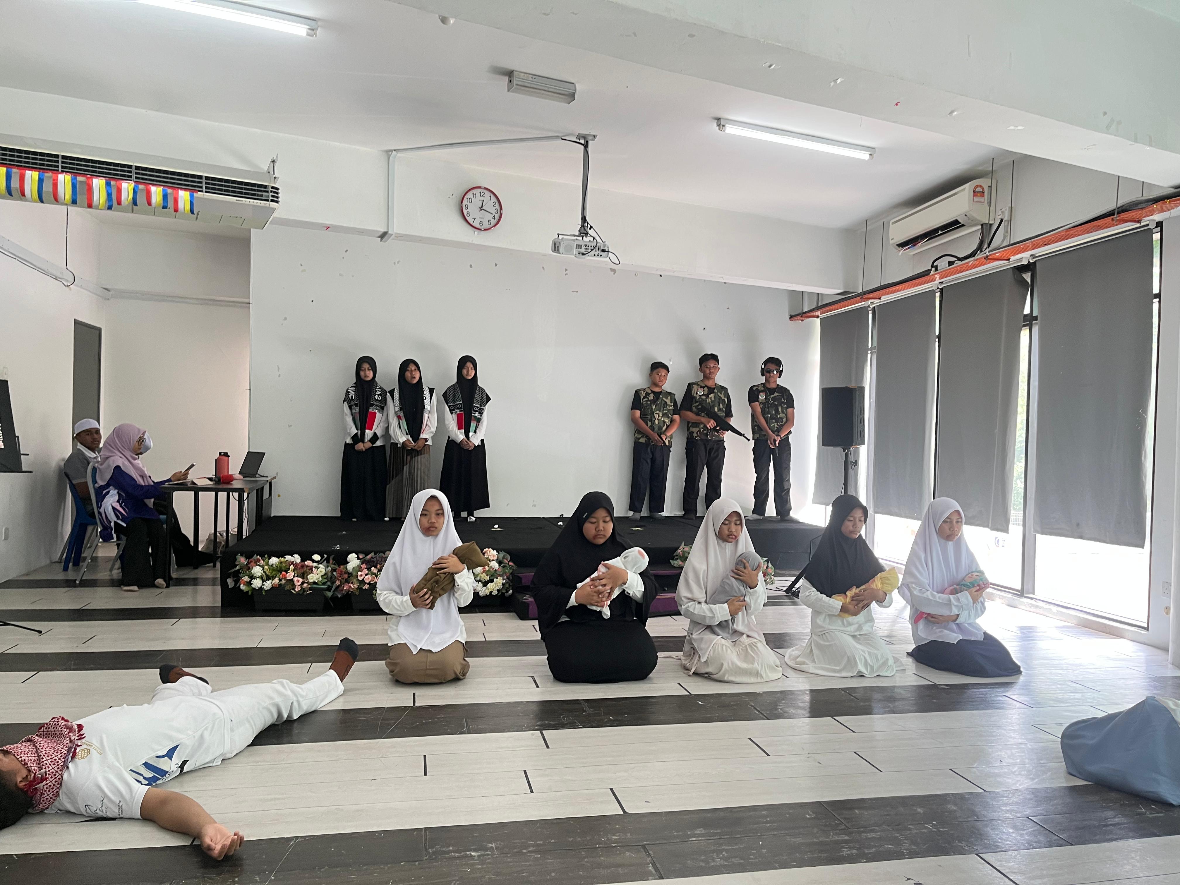 Selain itu, siswa Al Uswah Bangil kembali menampilkan Drama Palestina, yang disambut penuh apresiasi oleh audiens Malaysia. Penampilan ini tidak hanya sarat nilai seni, tetapi juga menjadi wujud kepedulian terhadap isu kemanusiaan global.