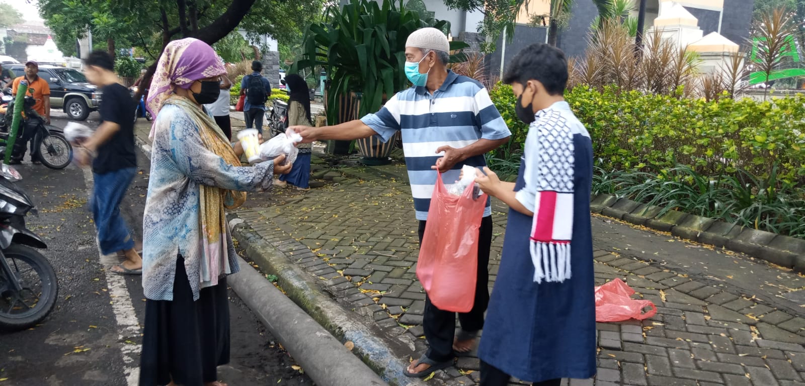 Setelah selesai mempersiapkan takjil yang akan dibagikan, saatnya mendistribusikannya alias membagikannya. Ada 3 titik sasaran aksi berbagi : Alun-alun Bangil, Area sekolah, dan Tetangga siswa.